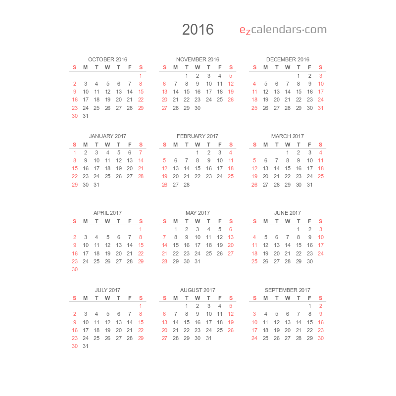 Simple twelve months calendar template EzCalendars