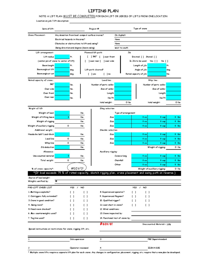 Access route for crane and space available at planned operating position. Web the lift plan must include: A list of items to be lifted/moved, including a. Web if the lift is covered by an existing procedure, attach it to the form and fill out only first page. Send filled & signed crane lifting plan excel.