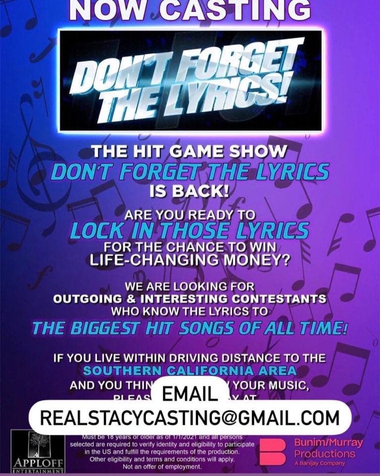 Casting for Game Show “Don’t The Lyrics” in Los Angeles