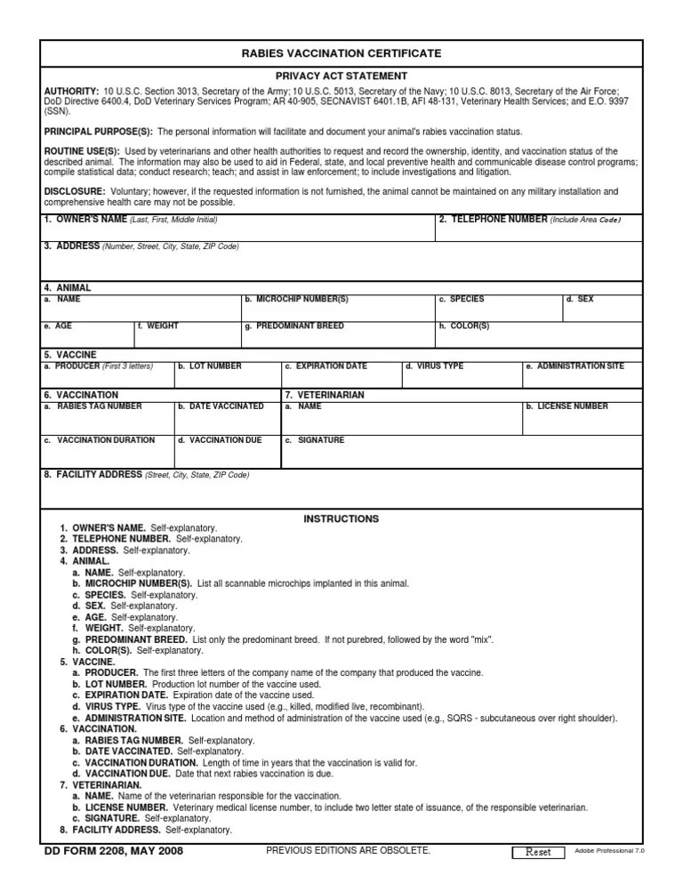 A rabies certificate form, formally known as nasphv form 51 (revised 2007), is a crucial document that verifies an animal, such as a dog, cat, or ferret, has been vaccinated against rabies. The rabies certificate form, officially known as nasphv form 51 (revised 2007), is a crucial document for pet owners, documenting a pet's. Street city state zip species dog.