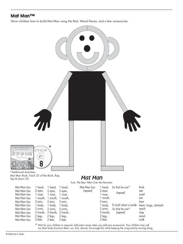 Today we met and made a new friend: We sang a song as we made our friend, and. Bring abcs to life with a—z for mat man and me! He helped us learn about what body parts people have and how they help us (see, hear, clap, etc.). Discover 'get set for school sing along'!