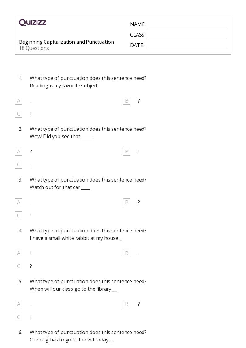 50+ Punctuation worksheets on Quizizz Free & Printable