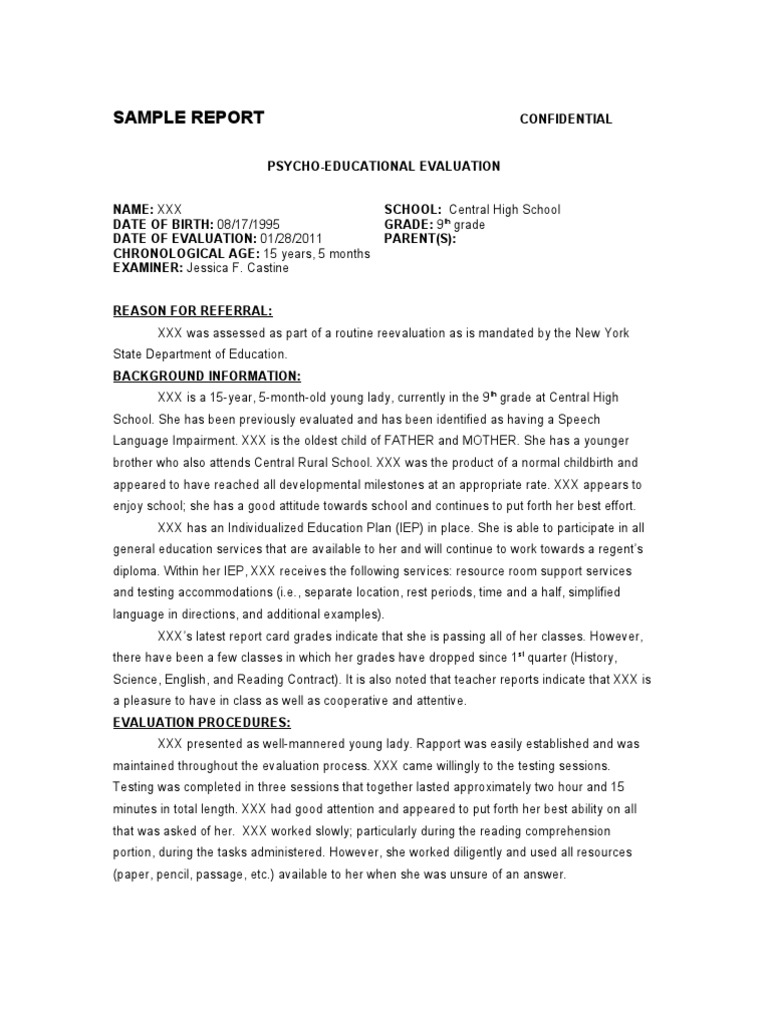 Sample Report 2 Intelligence Quotient Individualized Education