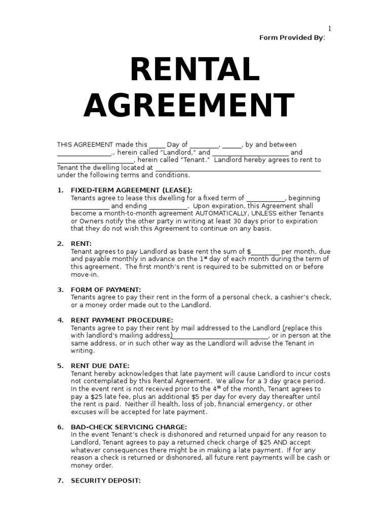 Basic Rental Agreement Or Residential Lease This Rental Agreement Or Residential.