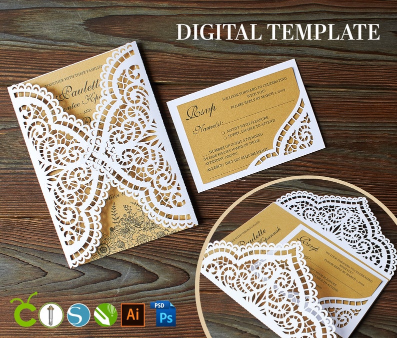Wedding Invitation template cricutLace wedding Invitation Etsy